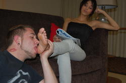 Female Slave worship Mistress Emily Ford's feet. (gallery)